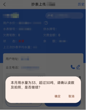 年初,公司完成智慧水務平臺營收系統(tǒng)升級,新增了手機抄表、數(shù)電發(fā)票開具、掃碼評價等功能,其中“手機抄表”實現(xiàn)了用水量異常預警,在實際運用中發(fā)揮了重要作用。在宜城窯灣八隊武先生家的例行抄表過程中,公司抄表員范云飛、李一可通過“手機抄表”系統(tǒng)錄入數(shù)據(jù)時,“抄表上傳”頁面自動彈出“本次用水量超過30噸”的提醒。經(jīng)與用戶過往平均用水量對比后,抄表員確認該用戶本季度用水量遠超日常,并在進一步觀察中發(fā)現(xiàn)水表持續(xù)緩慢轉(zhuǎn)動,判斷用戶表后可能存在漏水點。